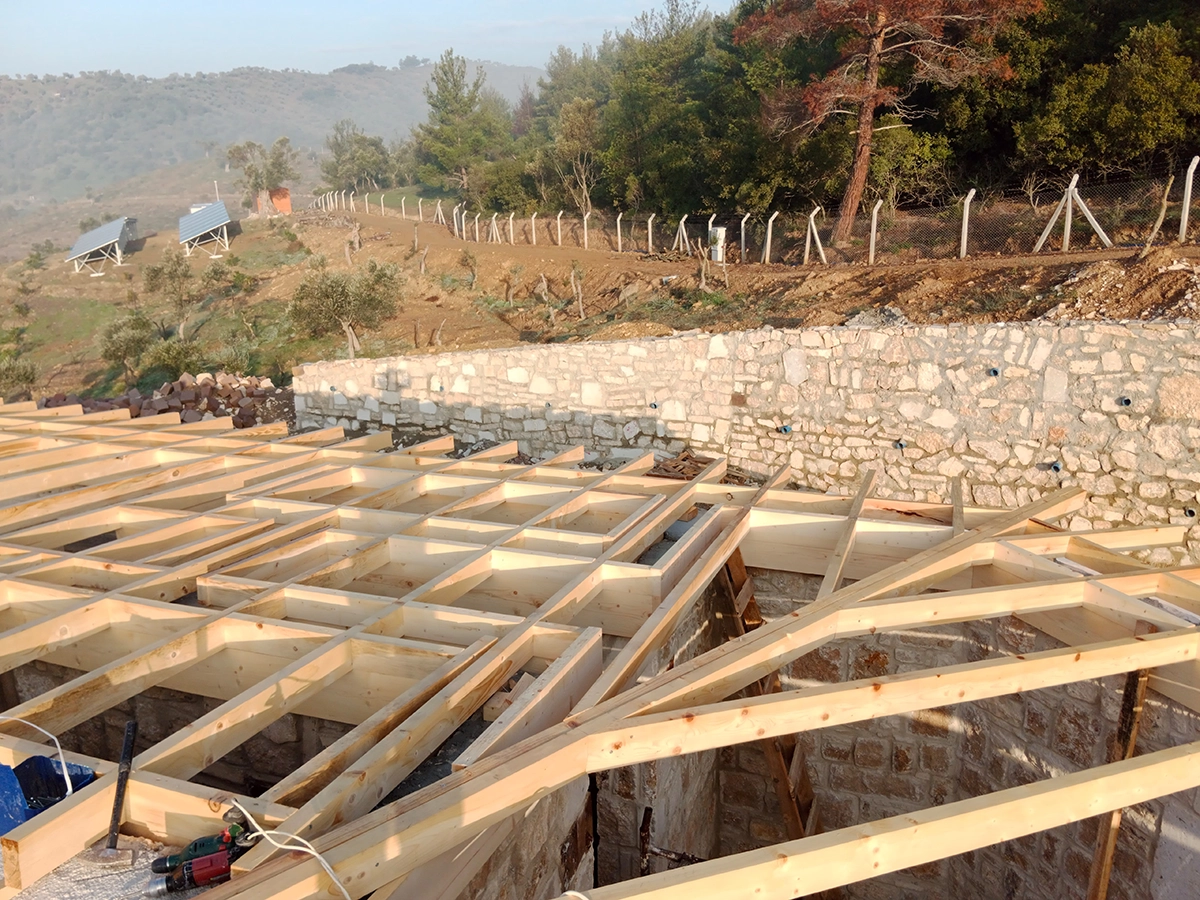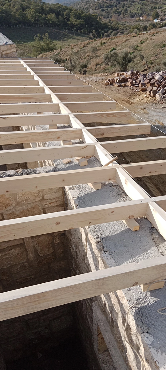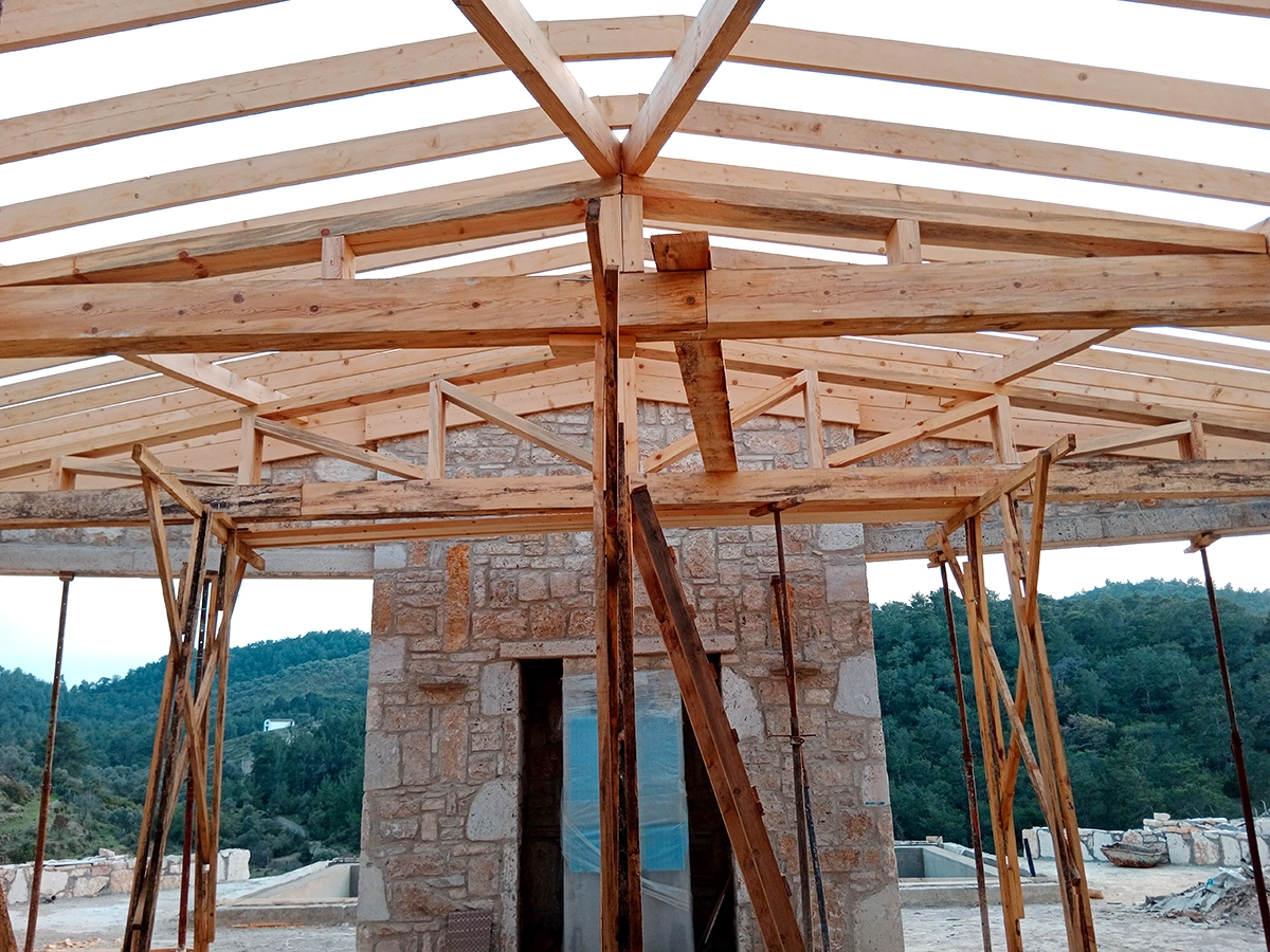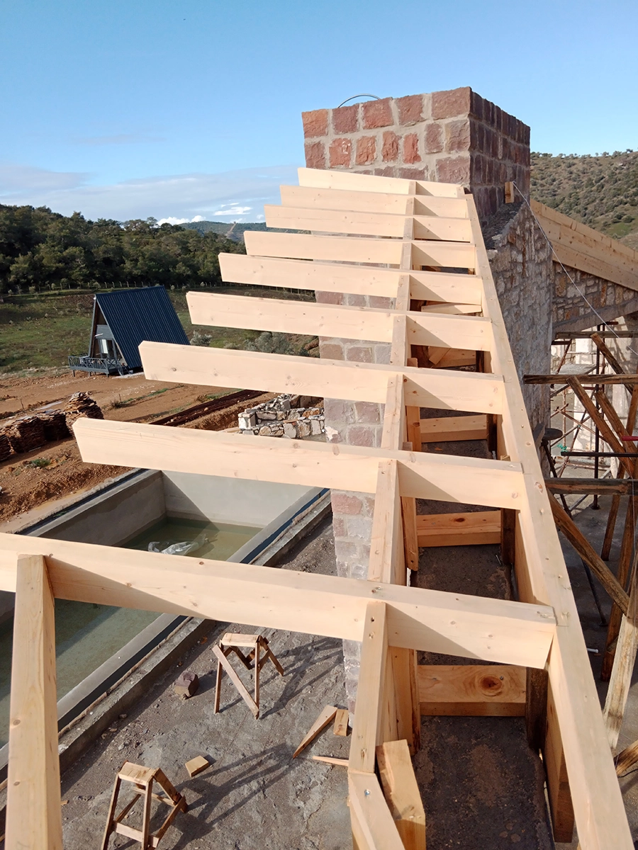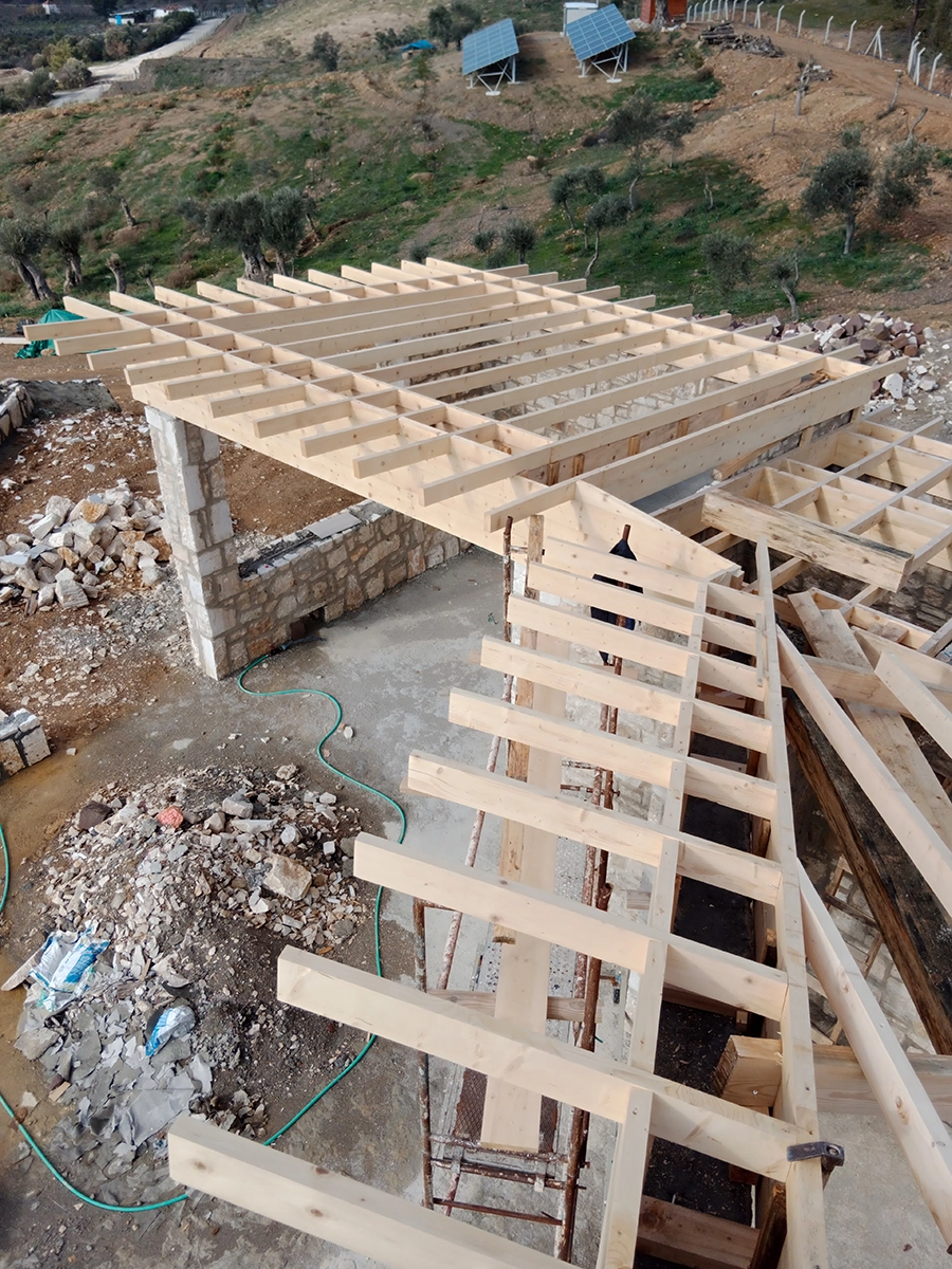 İzmir Menderes'de 350 mt2 taş bina üzeri ahşap çatı çalışmamız