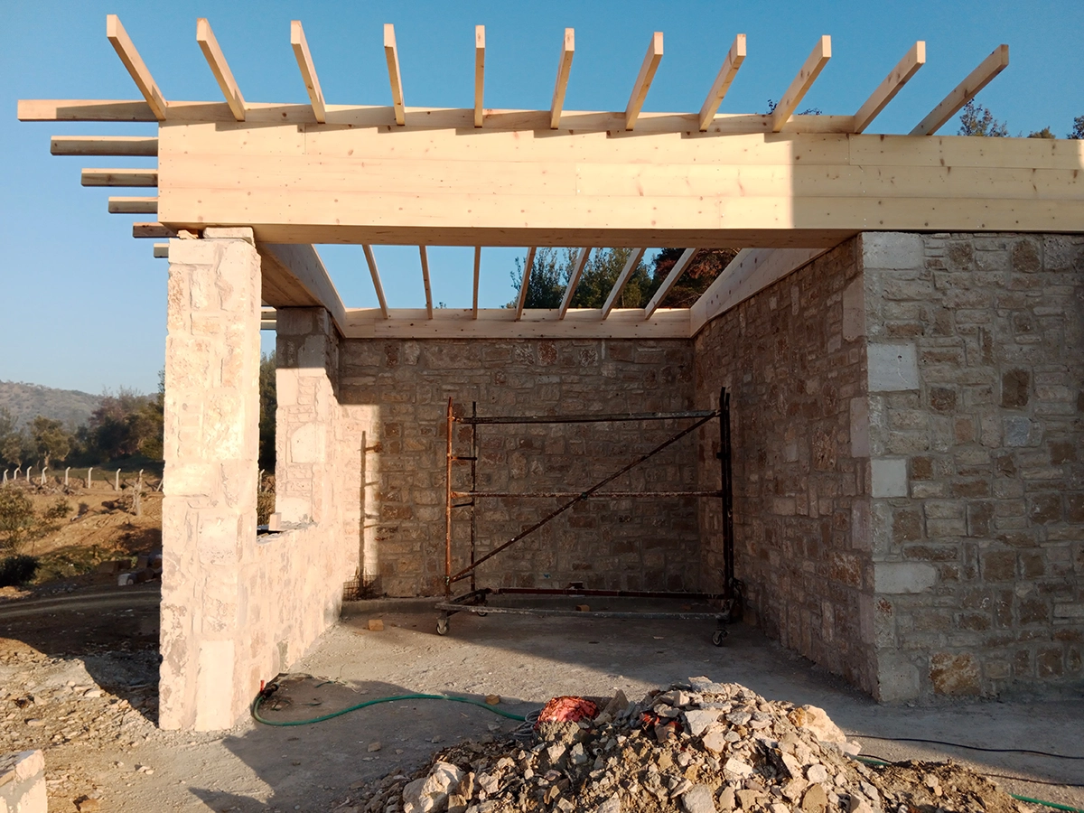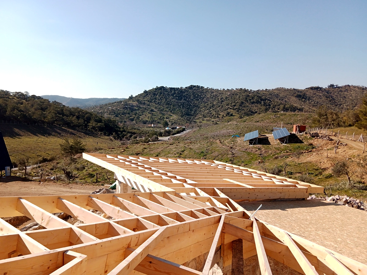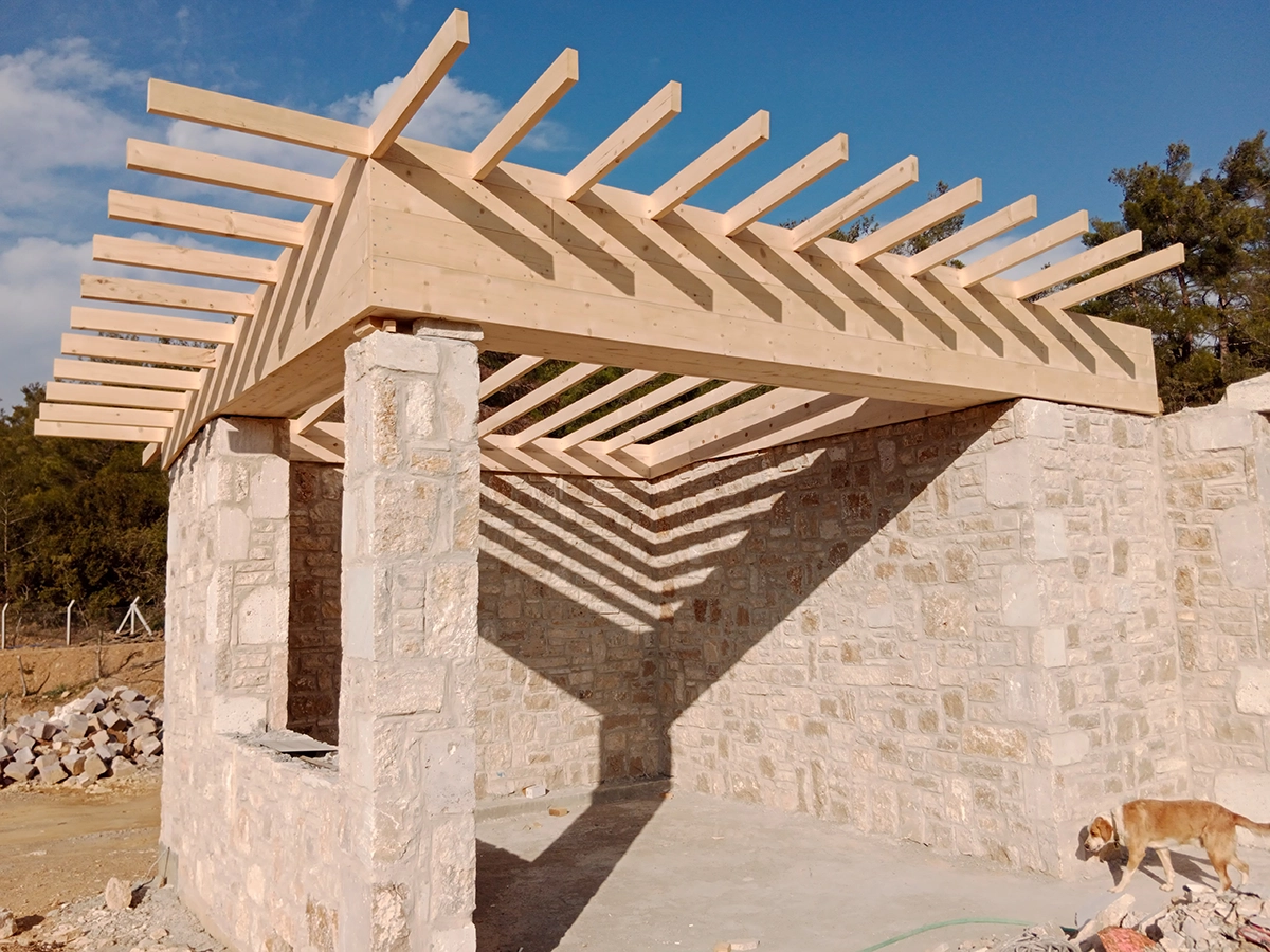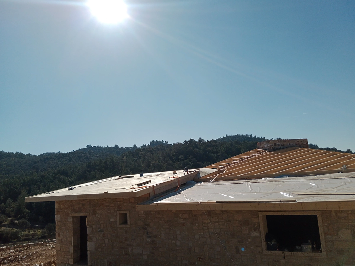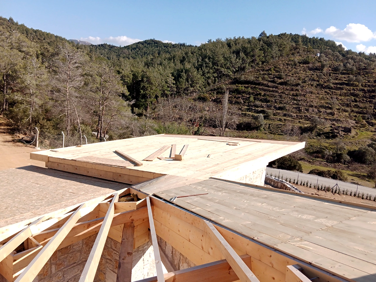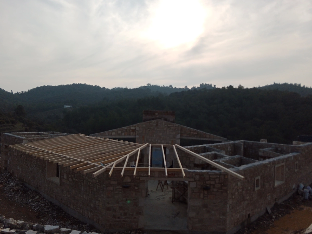İzmir Menderes'de 350 mt2 taş bina üzeri ahşap çatı çalışmamız