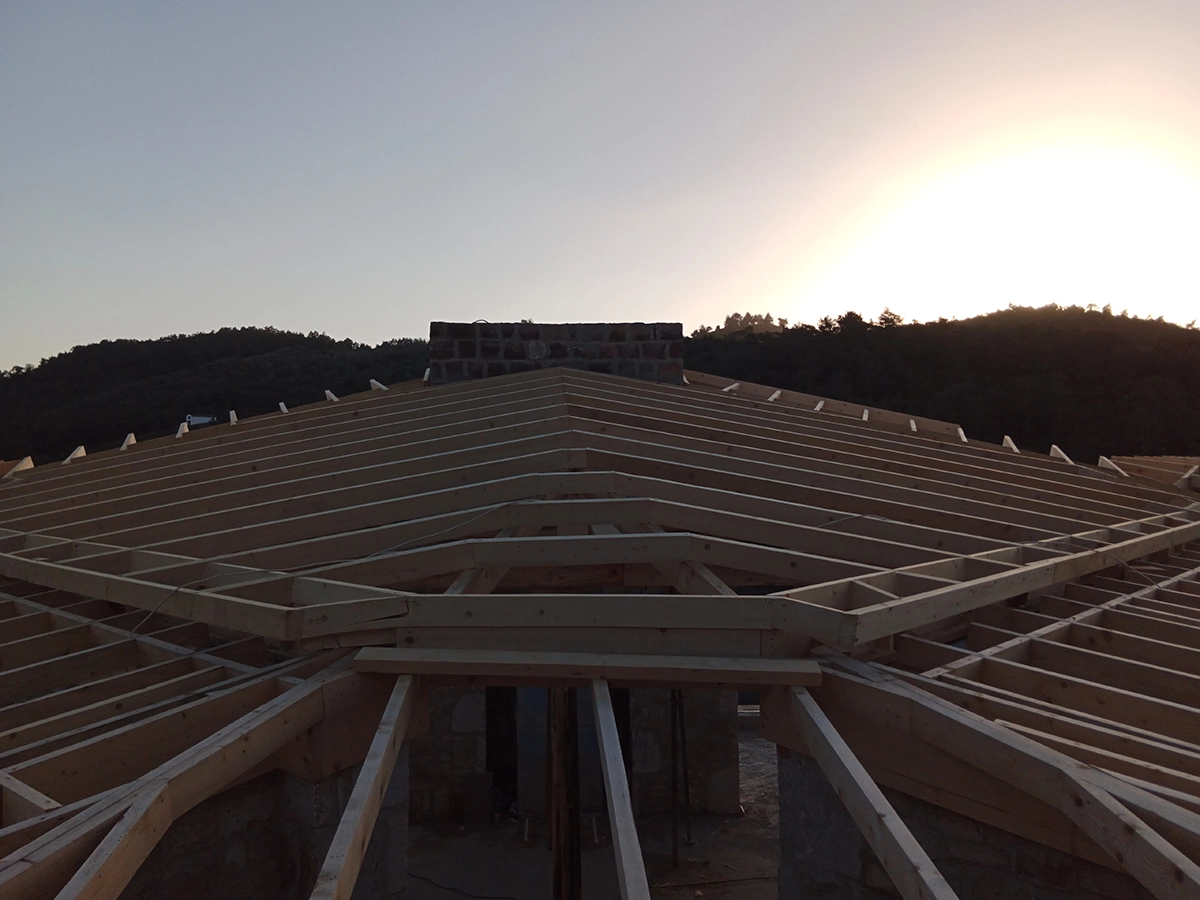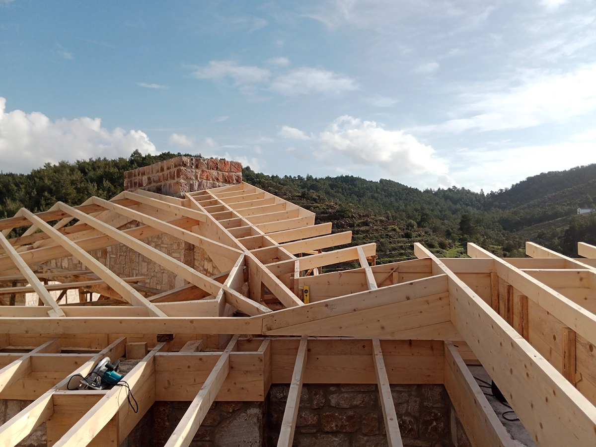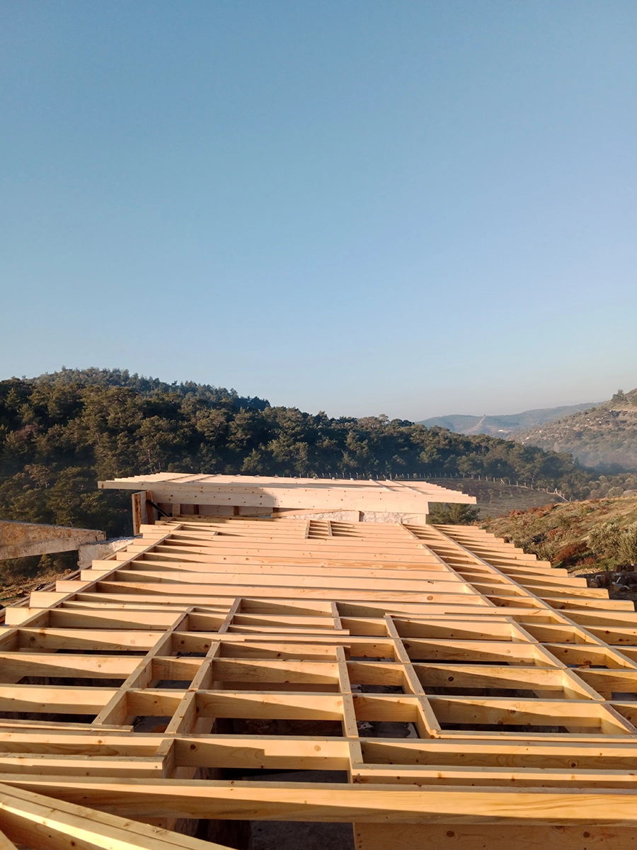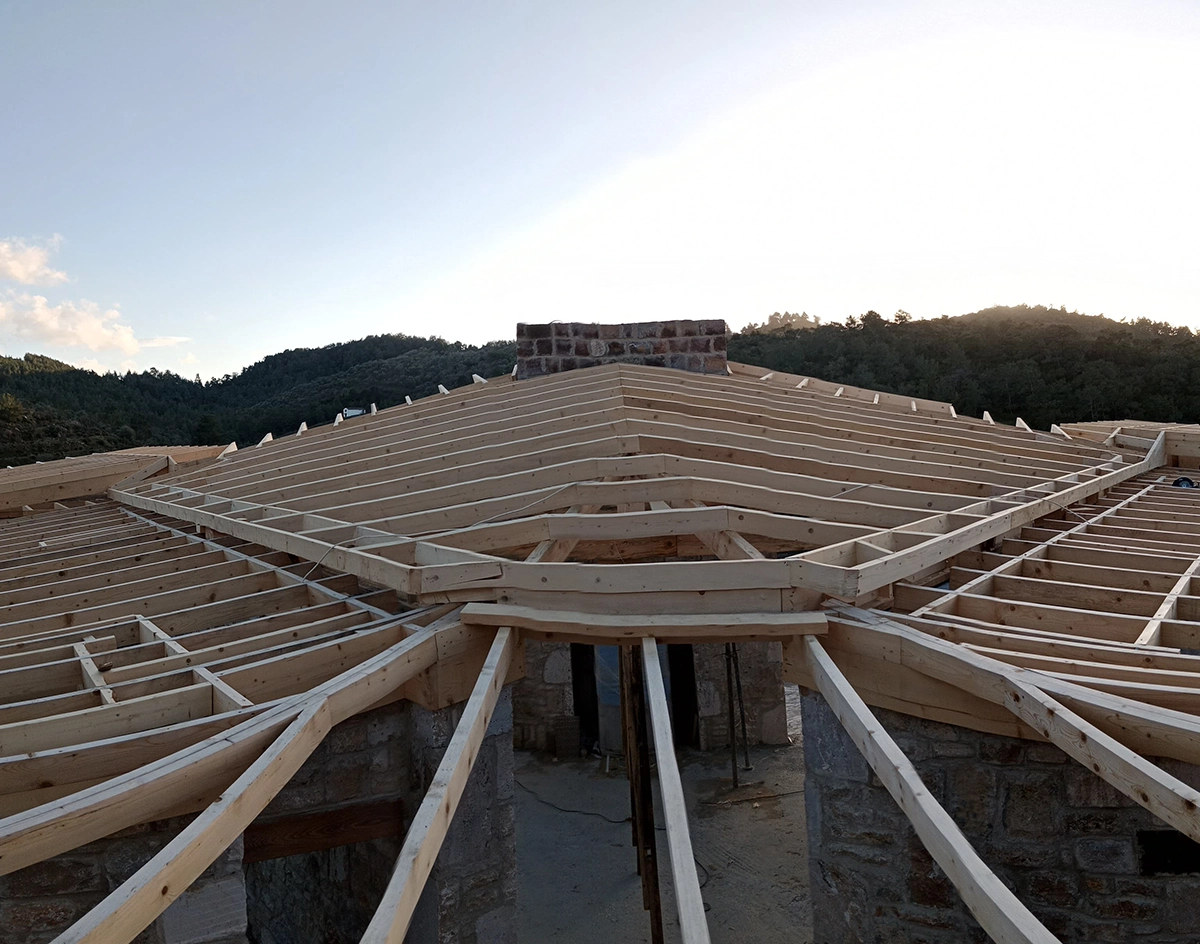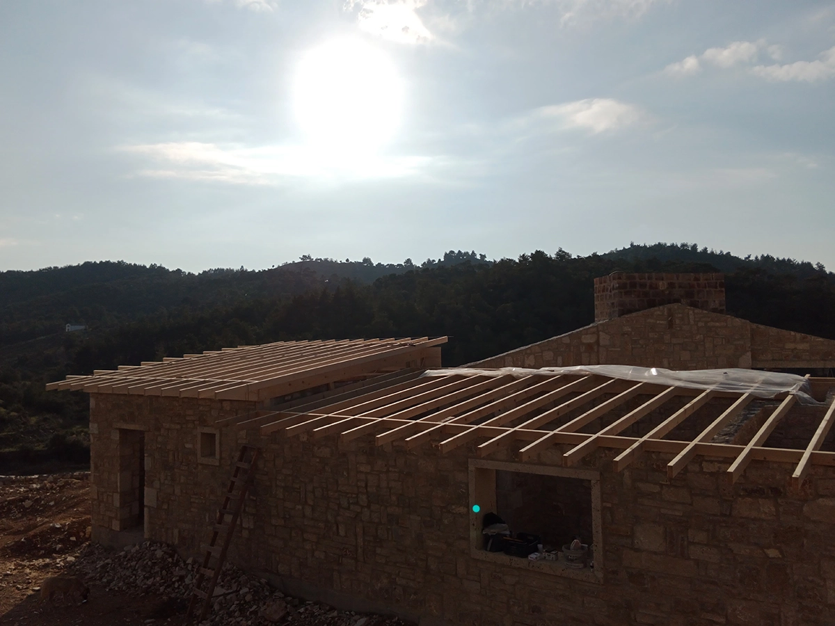 İzmir Menderes'de 350 mt2 taş bina üzeri ahşap çatı çalışmamız