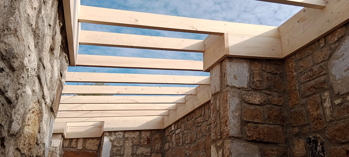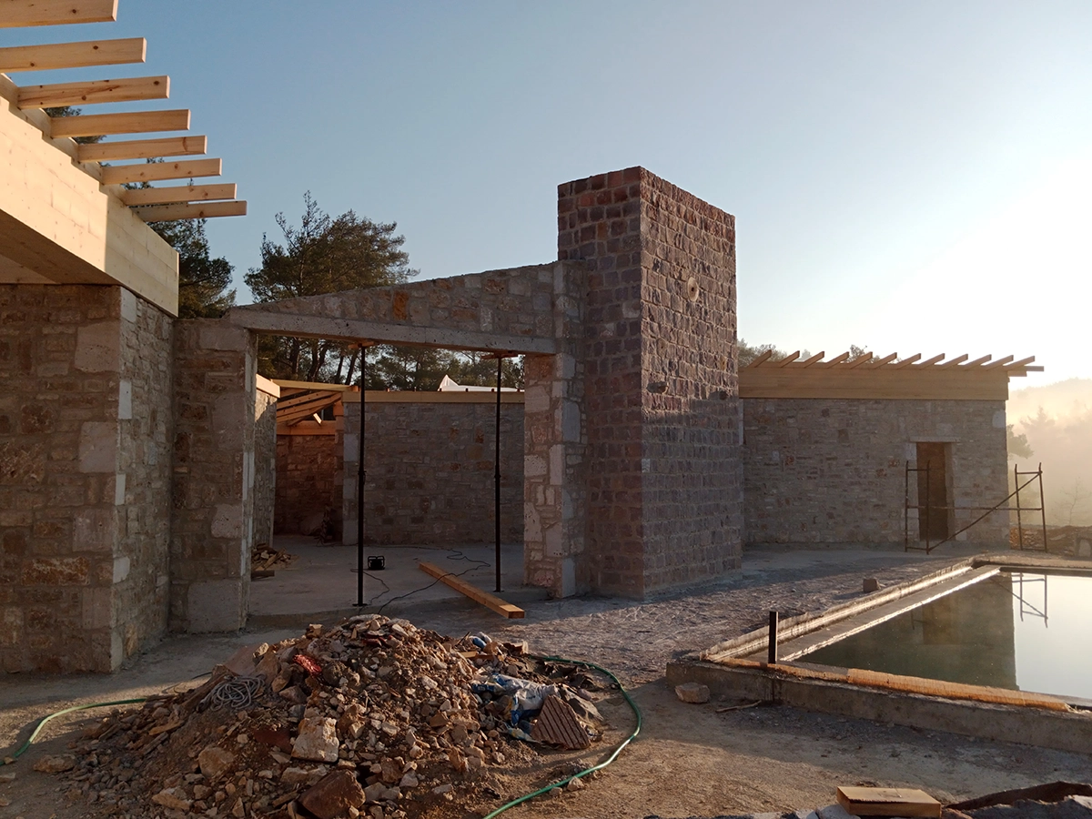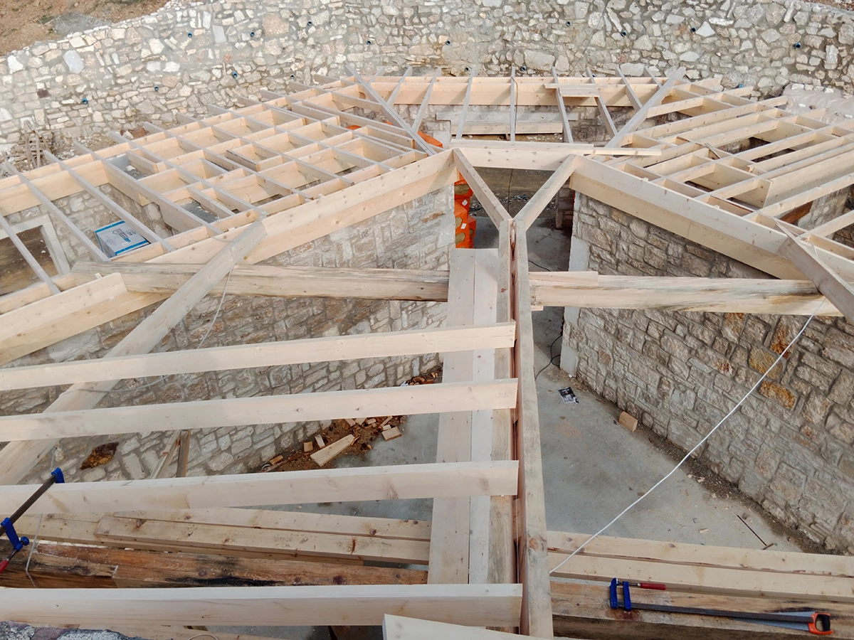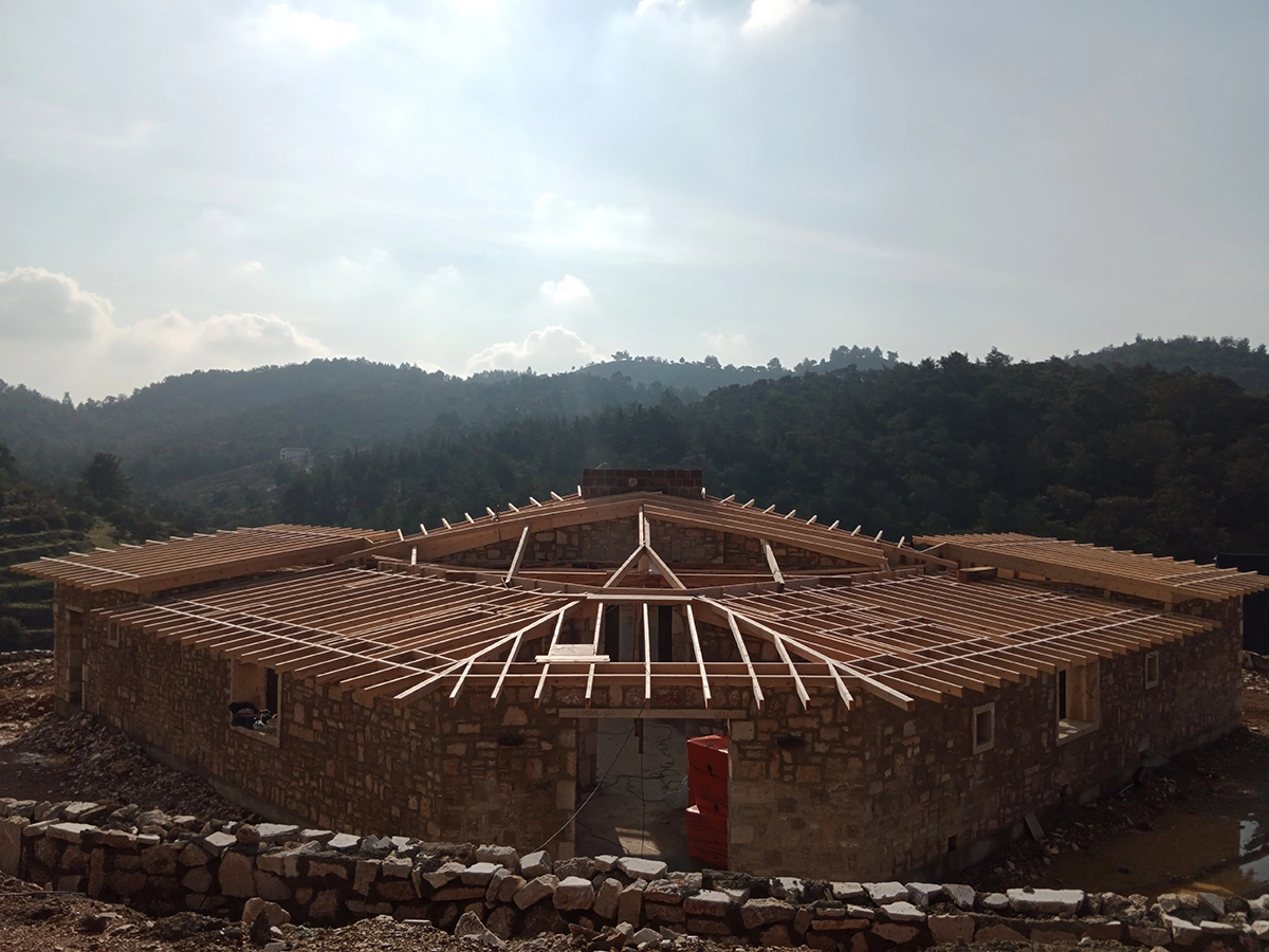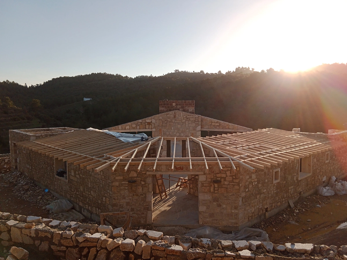 İzmir Menderes'de 350 mt2 taş bina üzeri ahşap çatı çalışmamız
